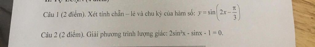 $\to y=f(x)=\sin(2x-\dfrac{\pi}3)$ không là hàm chẵn, cũng không là hàm lẻ
