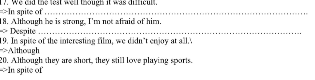 17. In spite of difficult test, we did the test well.