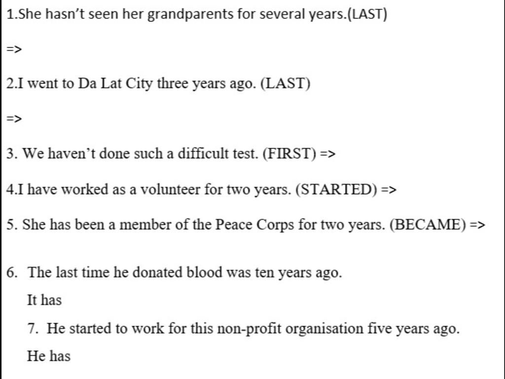 giải thích The last time + S + V2 + was + time ago = It has been + time + since + S + last + V2
