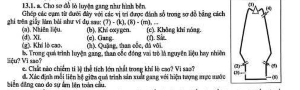 13.1. a. Cho sơ đồ lò luyện gang như hình bên.