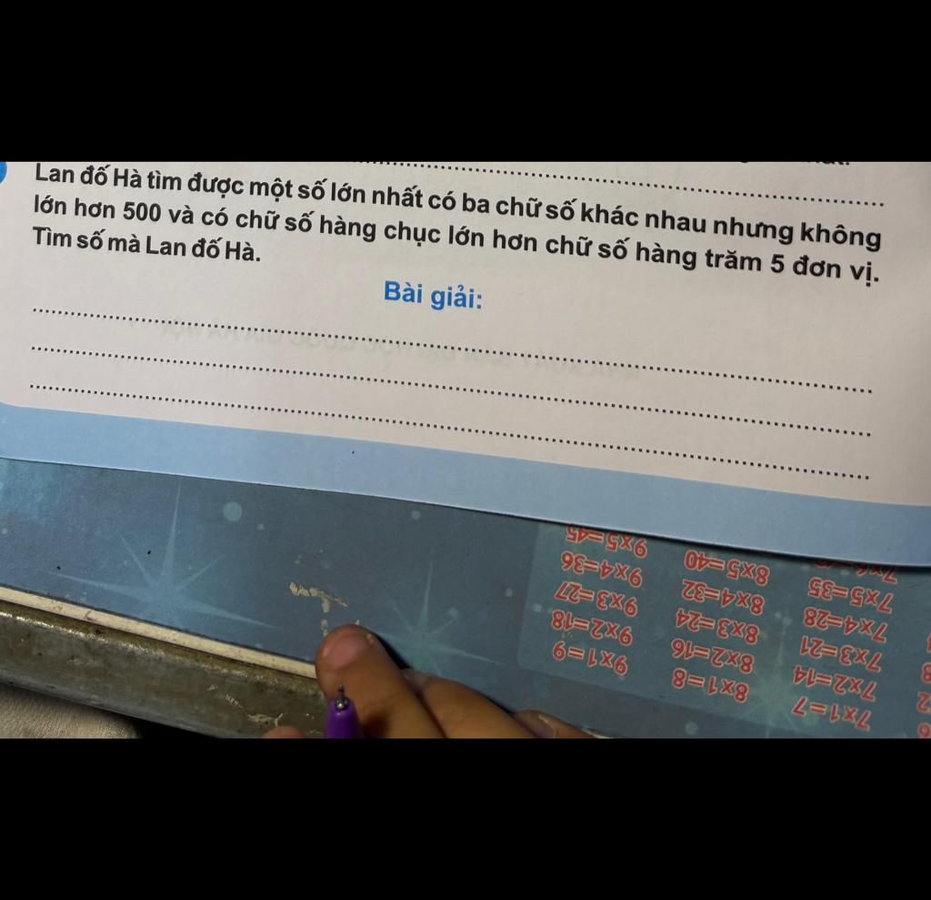 Để số đó là số lớn nhất, ta chọn chữ số hàng trăm `a` lớn nhất có thể là `a = 4`
