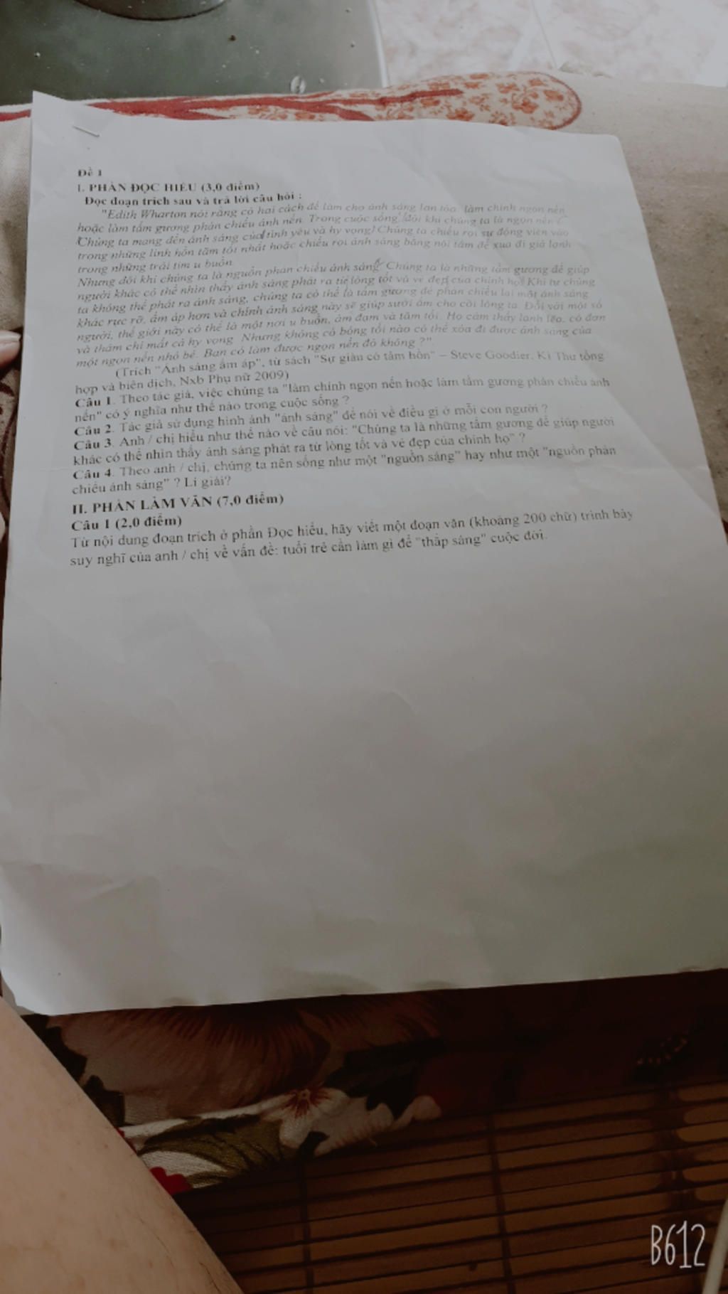4. Theo anh / chị, chúng ta nên sống như một "nguồn sáng" hay như một "nguồn phản chiếu ánh sáng" ? Lí giải ?
