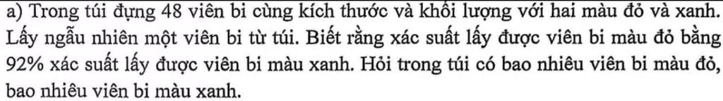Gọi số viên bi đỏ trong túi là `x` ( viên bi ) ( đk `48 > x > 0` )