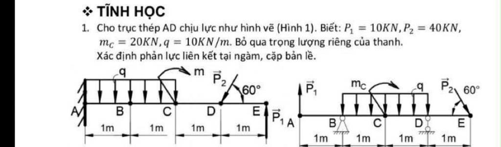 1. Cho trục thép AD chịu lực như hình vẽ (Hình 1). Biết: P