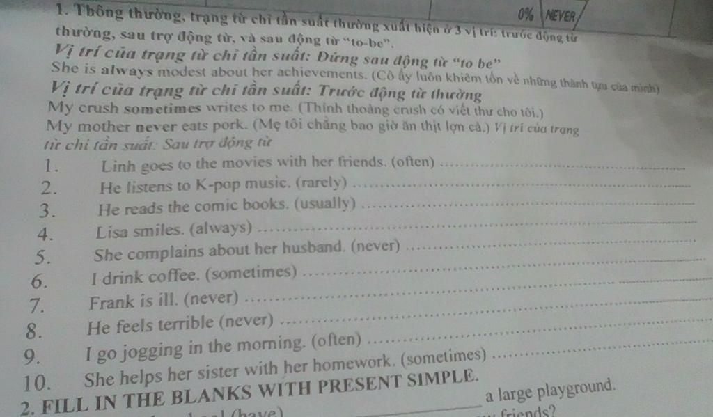 `1.` Linh often goes to the movies with her friends.