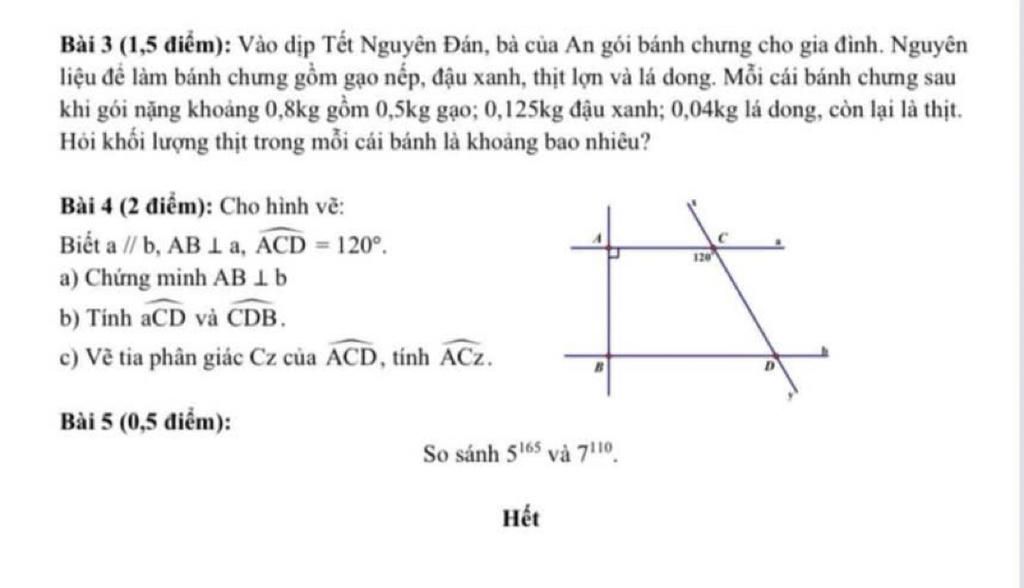 Bài 3 (1,5 điểm): Vào dịp Tết Nguyên Đán, bà của An gói bánh chưng cho gia đình. Nguyên