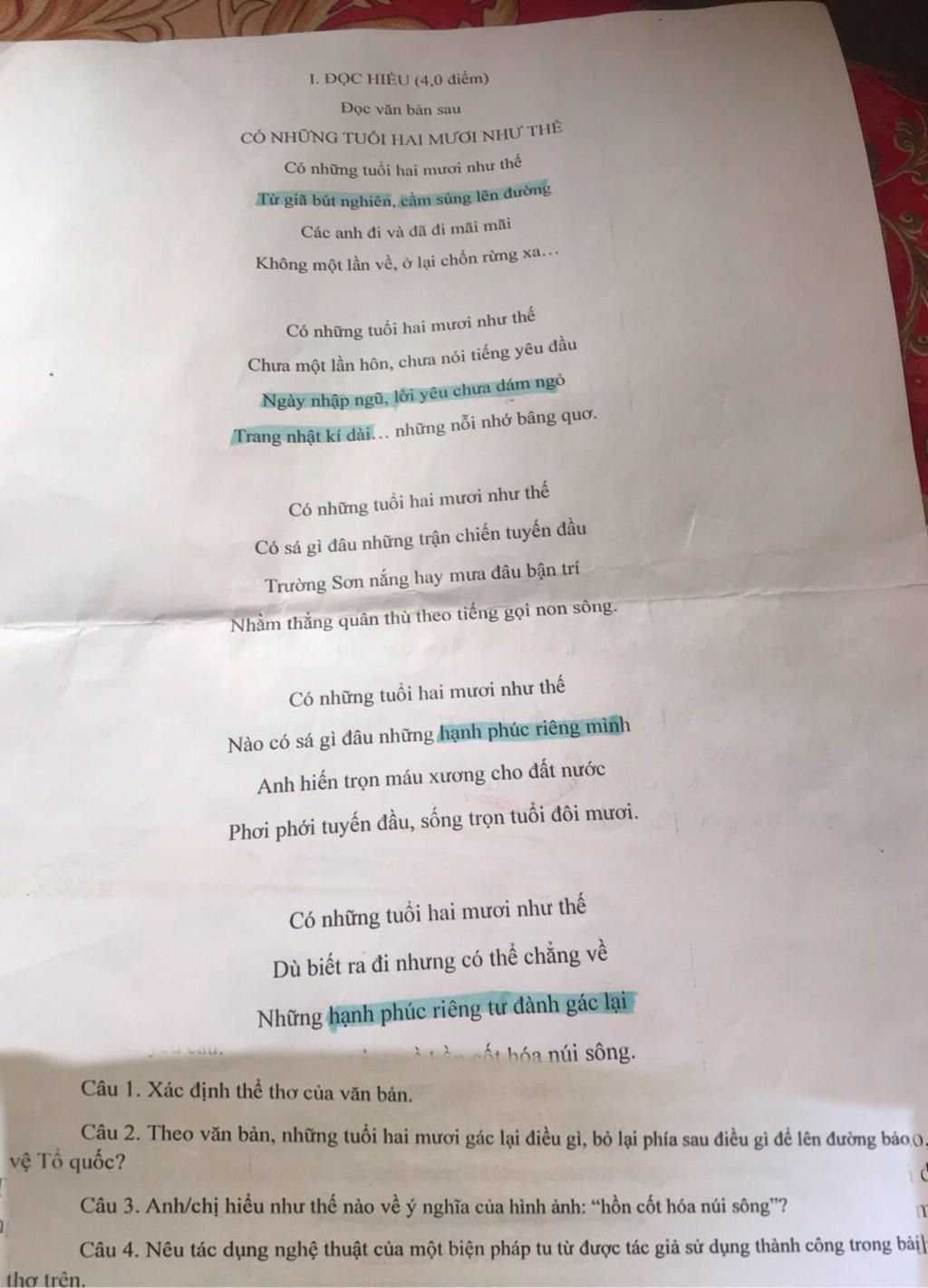 Viết bài văn nghị luận(khoảng 600 chữ)phân tích ,đánh giá hình ảnh người lính trong ba khổ thơ cuối của bài thơ ở phần đọc hiểu được không
