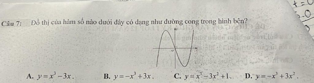 Đồ thị có dạng: y=ax³+bx²+cx+d