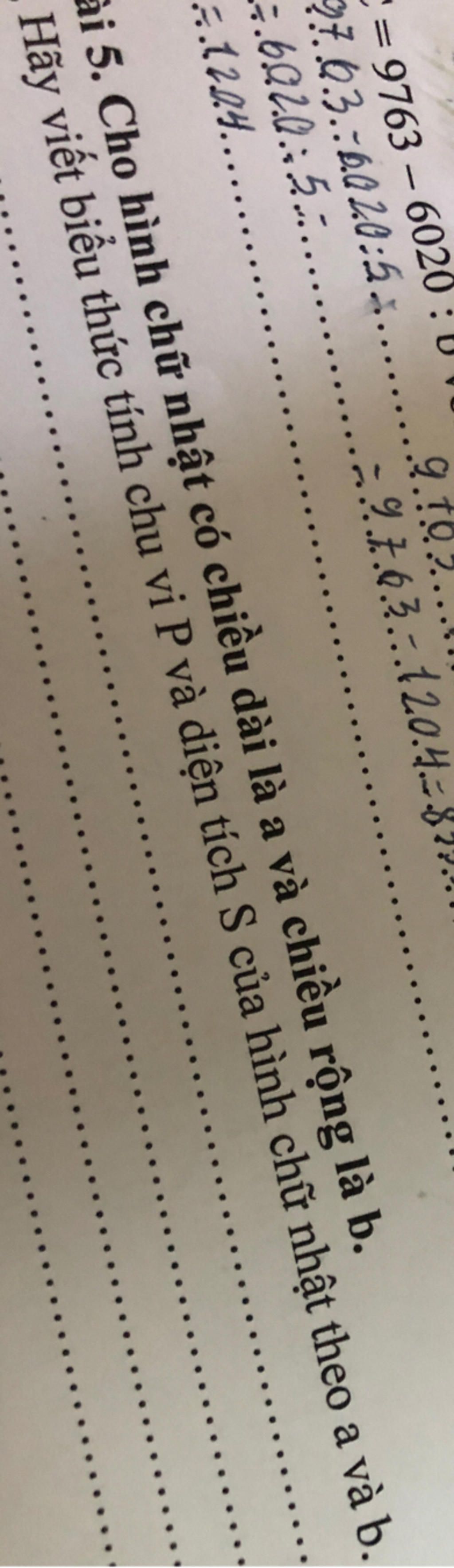 Biểu thức tích diện tích `S` của hình chữ nhật là: