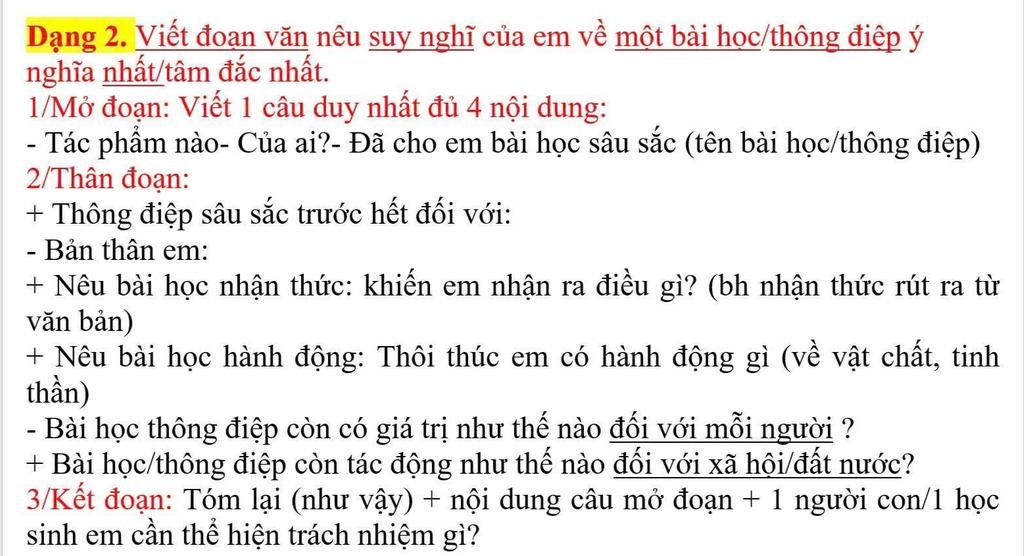 Dạng 2. Viết đoạn văn nêu suy nghĩ của em về một bài học/thông điệp ý