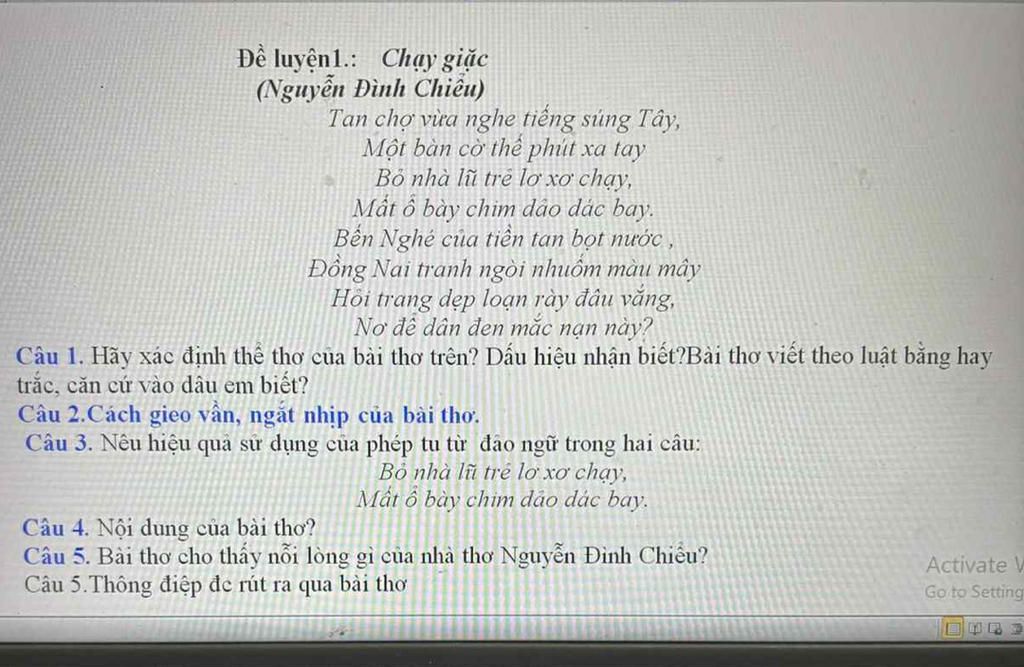 Câu 4:Nội dung:là bức tranh bi thảm về cảnh nhân dân Nam Bộ chạy loạn khi thực dân Pháp xâm lược, thể hiện lòng thương xót, căm thù giặc và kêu gọi tinh thần yêu nước