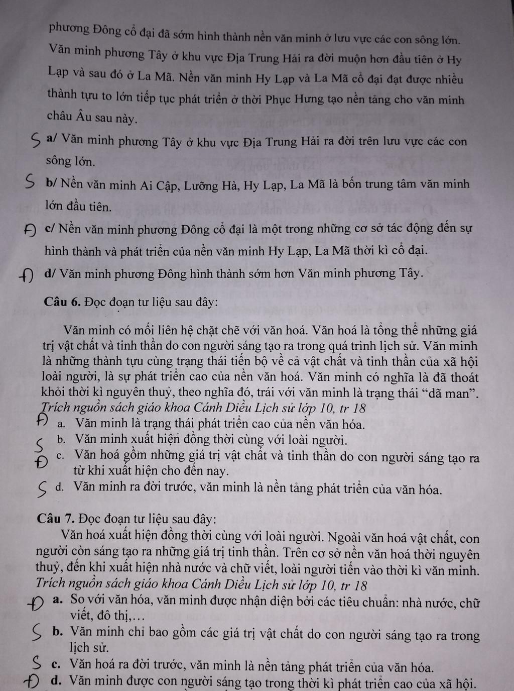 d. đúng ` -> ` văn minh phương đông ra đời sớm hơn phương Tây