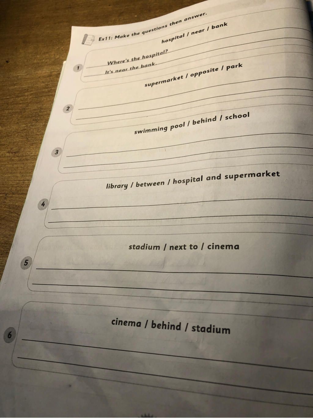 5) Stadium/ next to/ cinema