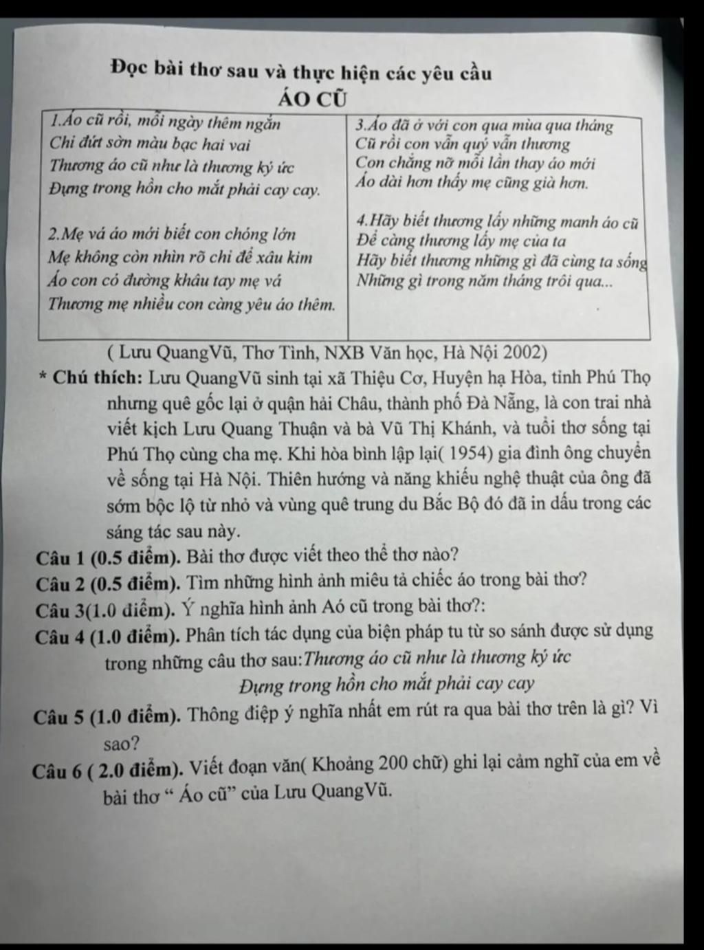 Đọc bài thơ sau và thực hiện các yêu cầu
