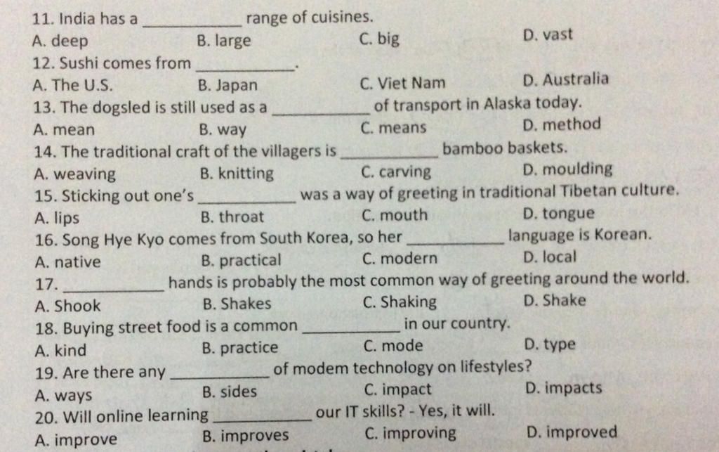20. Will online learning ______ our IT skills? - Yes, it will.