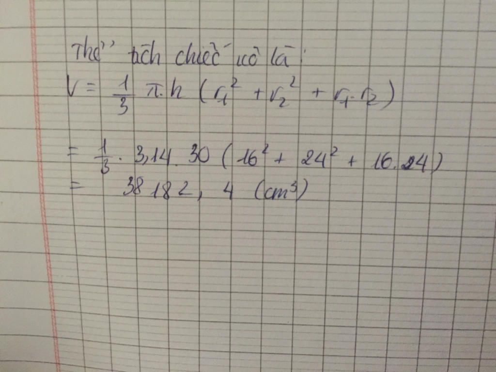 $= \frac{1}{3}\pi.30.(24^2+16^2+24.16)$