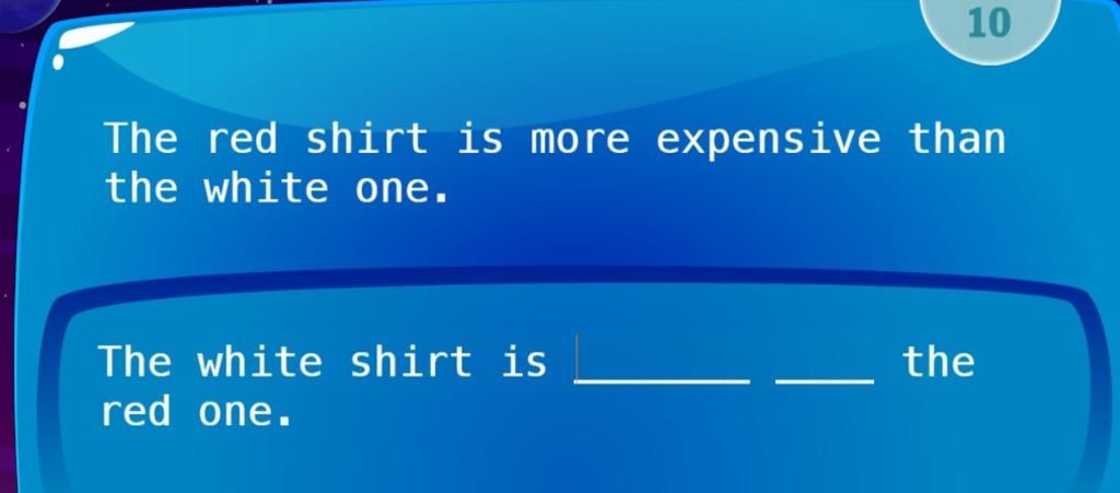 `->` Chiếc áo sơ mi trắng rẻ hơn chiếc áo sơ mi đỏ.