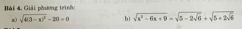 `b, \sqrt{x^2-6x+9}=\sqrt{5-2\sqrt{6}} +\sqrt{5+2\sqrt{6}}`
