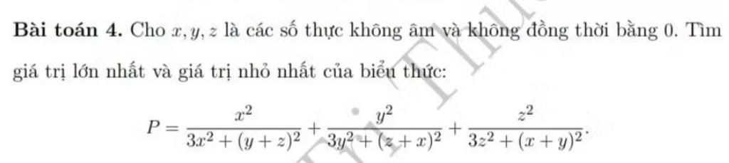 Bài toán 4. Cho x, y, z là các số thực không âm và không đồng thời bằng 0. Tìm