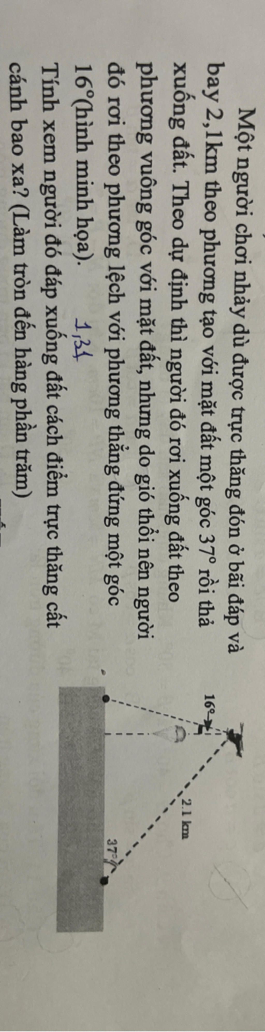 bay 2,1km theo phương tạo với mặt đất một góc 37° rồi thả