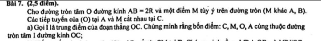 a) Gọi I là trung điểm của đoạn thẳng OC. Chứng minh rằng bốn điểm: C, M, O, A cùng thuộc đường