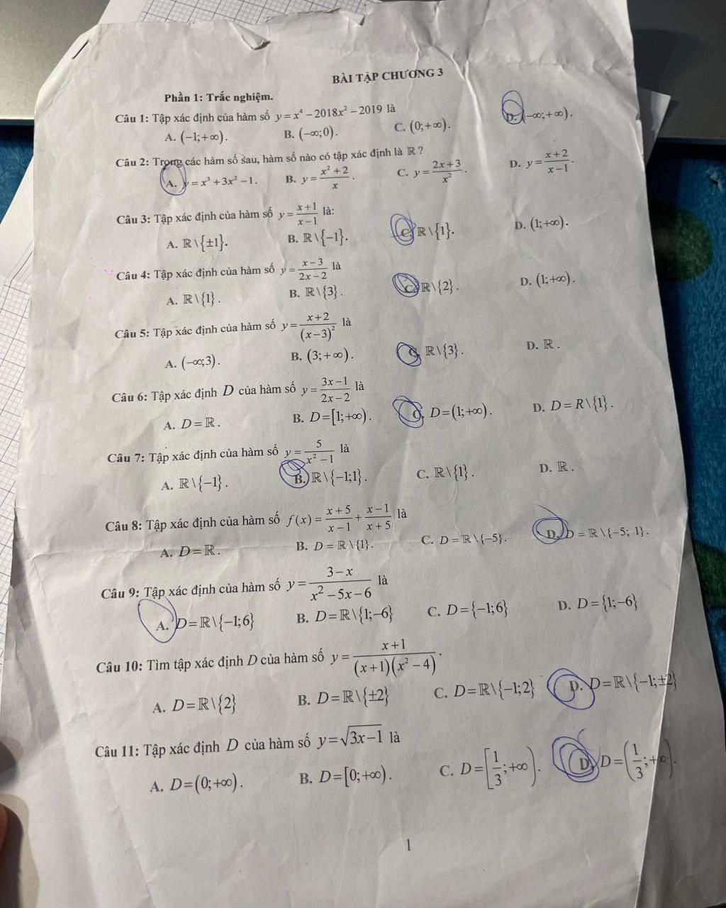 Câu 2: Trong các hàm số sau, hàm số nào có tập xác định là R ?