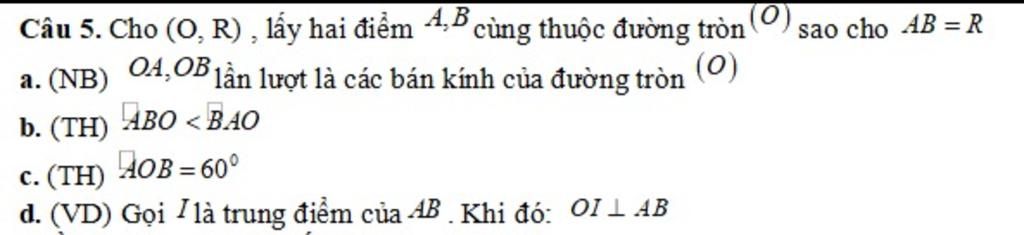 `a)` đúng vì `OA ; OB` là bán kính