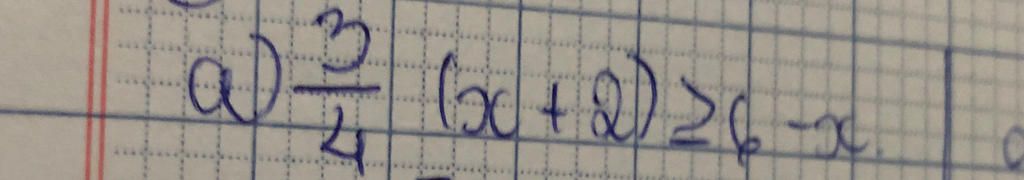 ($\frac{3}{4}$ )(x + 2) ≥ 6 – x