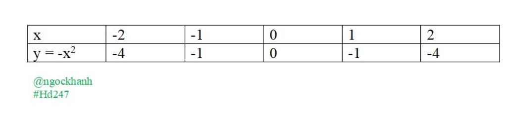 \begin{array}{|c|c|c|c|c|c|}\hline \text{x}&\text{-2}&\text{-1}&\text{0}&\text{1}&\text{2}\\\hline \text{y}&\text{-4}&\text{-1}&\text{0}&\text{-1}&\text{-4}\\\hline\end{array}
