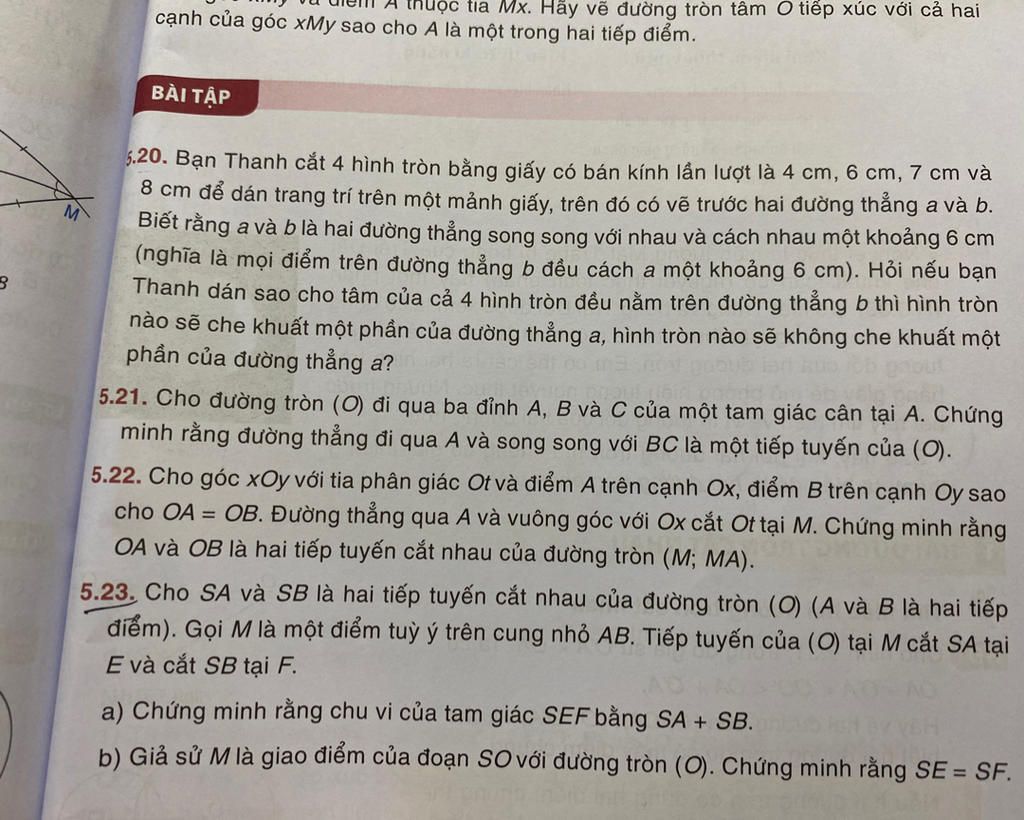 cạnh của góc xMy sao cho A là một trong hai tiếp điểm.