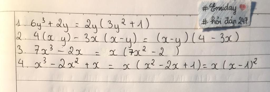`2) 4( x - y ) - 3x( x - y )`