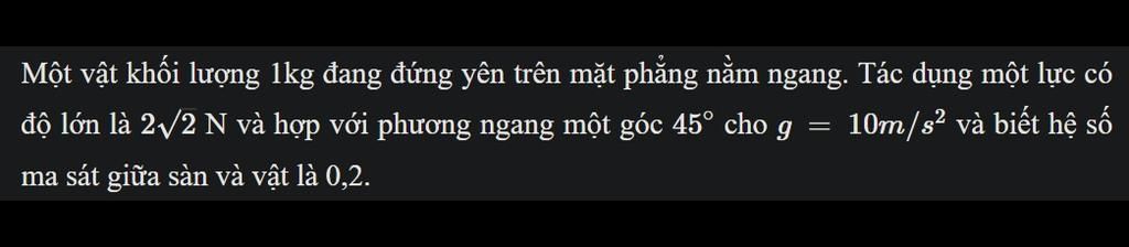 \Rightarrow N = P - F\sin \alpha = 1.10 - 2\sqrt 2 .\sin 45\\