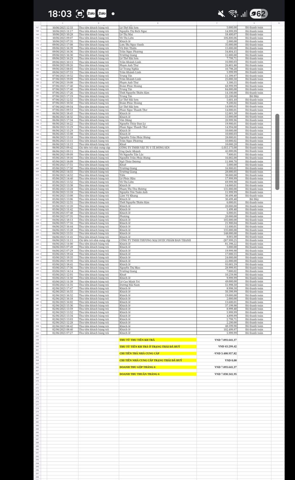 $-$ Doanh thu gộp : $7,093,641,37$