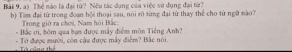 Tớ (trong câu Tớ được mười, còn cậu được mấy điểm?) `->` thay thế cho Bắc (người nói lúc đó).