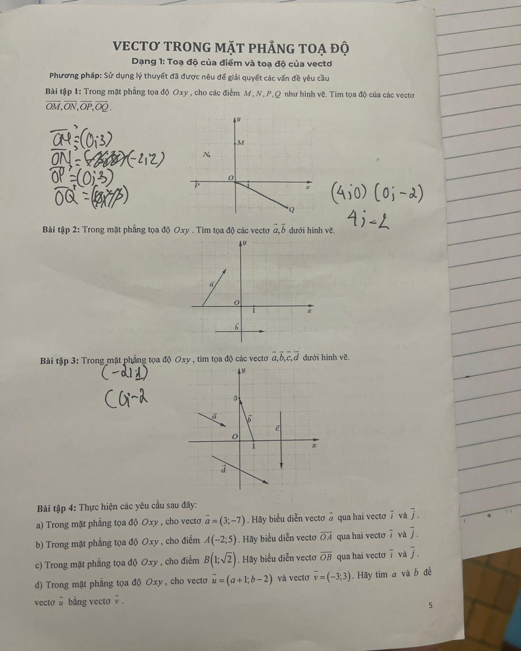Bài tập 1: Trong mặt phẳng tọa độ Oxy, cho các điểm M,N,P,Q như hình vẽ. Tìm tọa độ của các vectơ