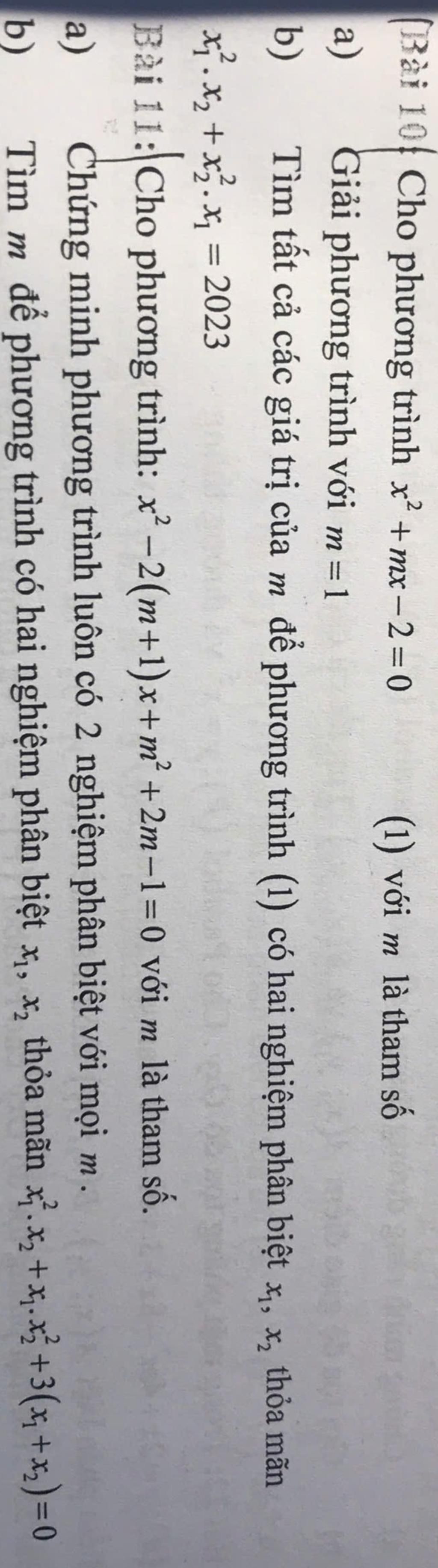 Bài 11: Cho phương trình: x −2(m+1)x+m^ +2m-1=0 với m là tham số.