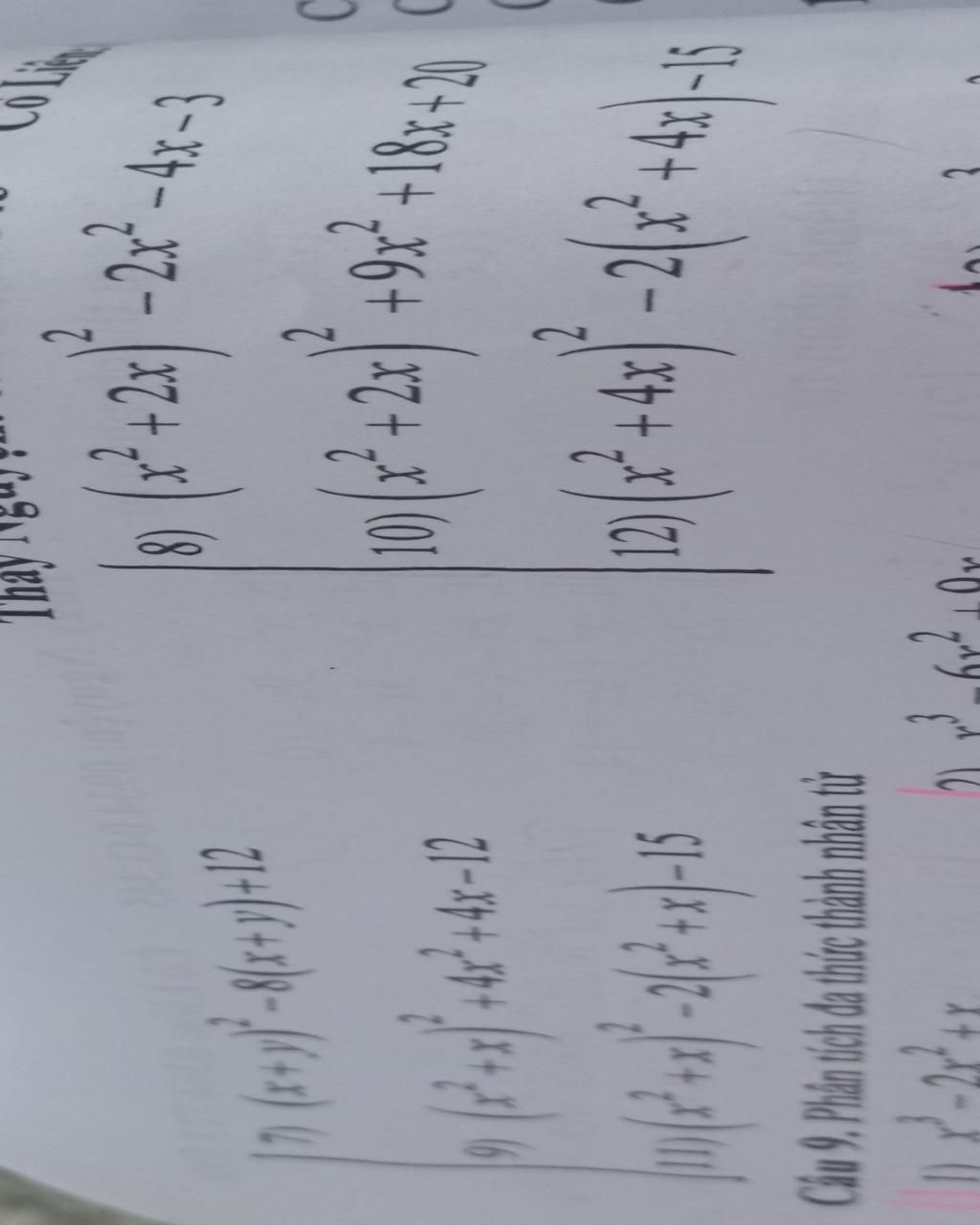 `9) (x^2+x)^2 + 4x^2 + 4x - 12 `