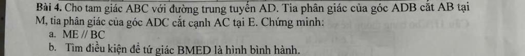 b. Tìm điều kiện để tứ giác BMED là hình bình hành.