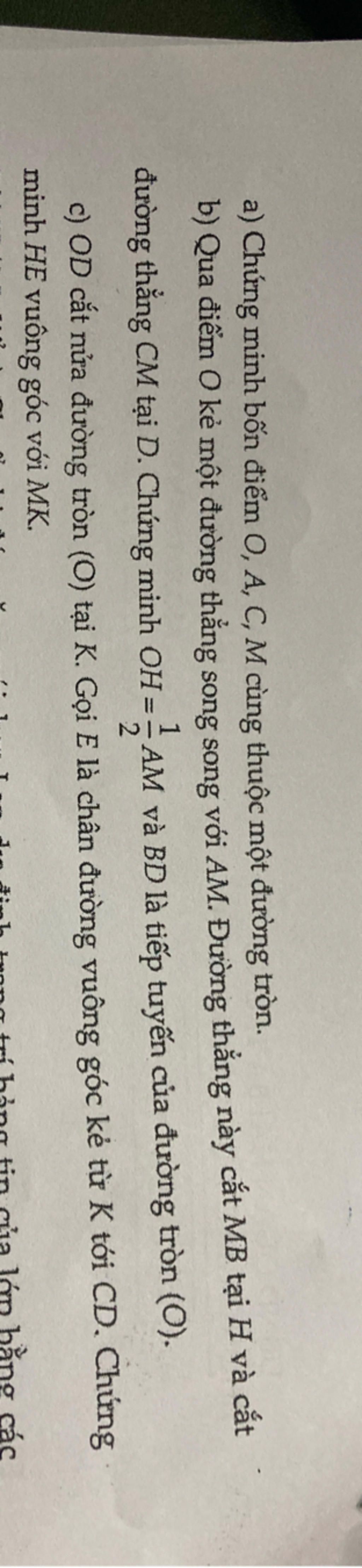 b) Qua điểm O kẻ một đường thẳng song song với AM. Đường thẳng này cắt MB tại H và cắt