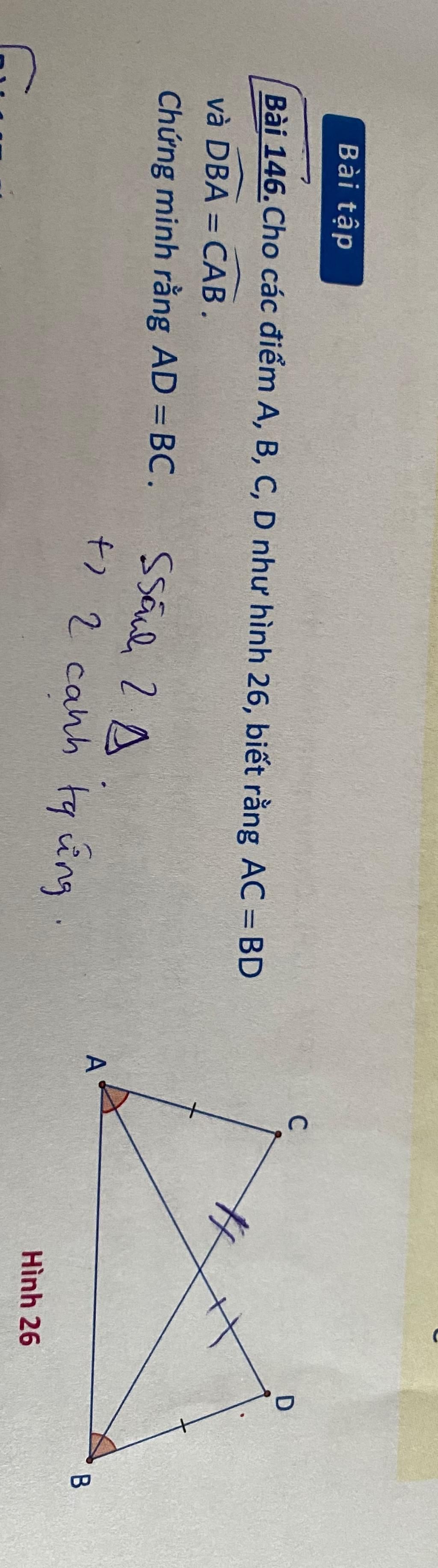 `\hat(CAB)=\hat(DBA)` (giả thiết)