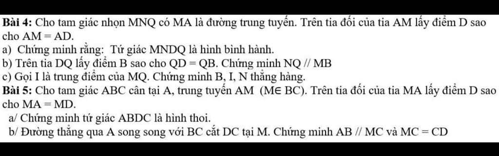 Tứ giác `MBQN` có `:` `MN` `=` `QB` và `MN` `//``//` `QB`