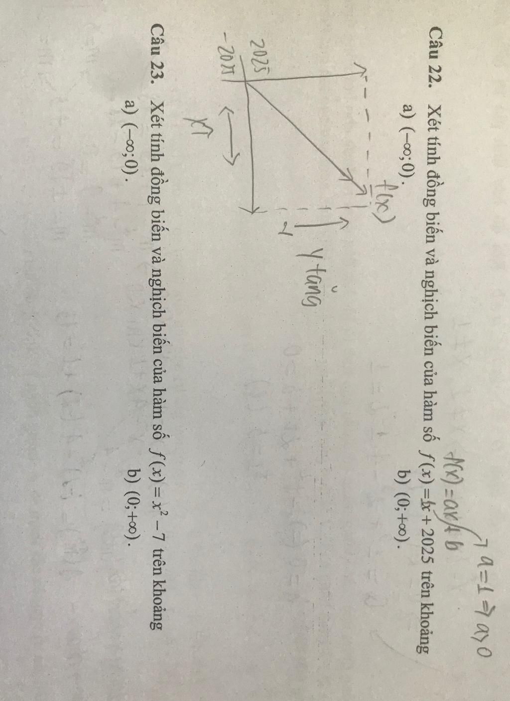 Câu 22. Xét tính đồng biến và nghịch biến của hàm số f(x)=x+2025 trên khoảng
