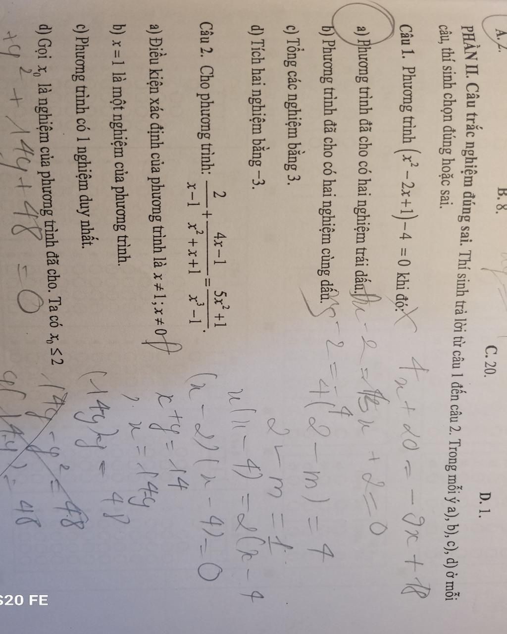 Câu 1. Phương trình (x −2x+1)–4 =0 khi đó:
