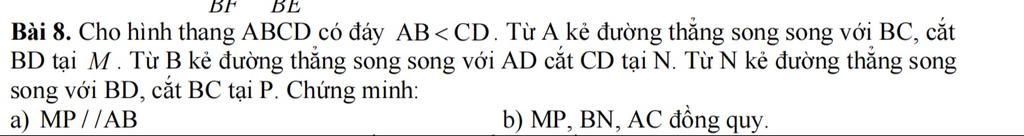 Ta có: $AB//CD, MP//CD, AB=DN$