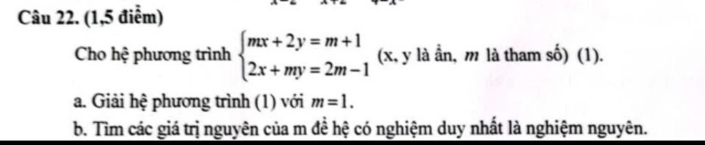 $\begin{cases}mx+2y=m+1\\2x+my=2m-1\end{cases}$