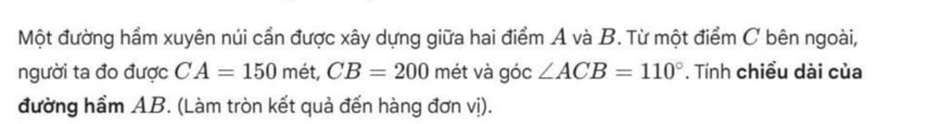AB^2 &= 62500 - 60000 \cdot (-0,34202) \quad (\text{lấy giá trị gần đúng của } \cos 110^\circ) \\
