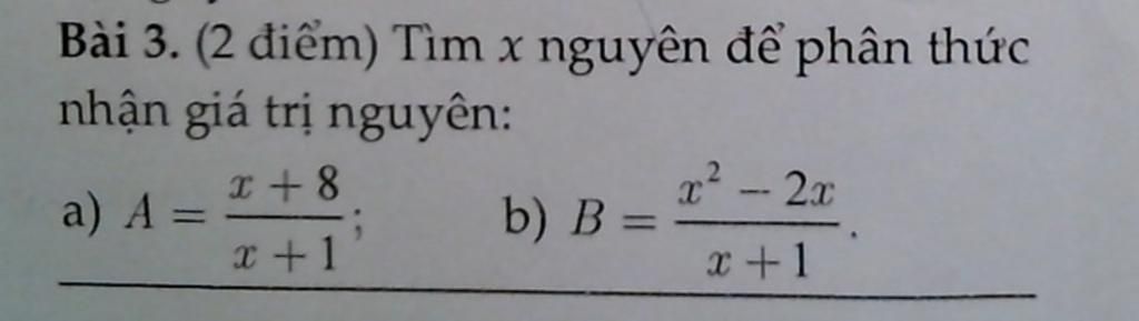 để `B in ZZ` thì `x+1 in Ư(3)={+-1;+-3}`
