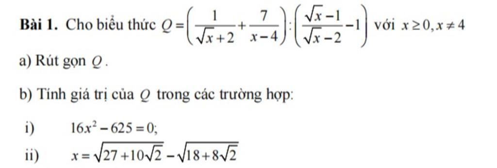 Thay $x = \dfrac{25}{4}$ vào biểu thức $Q$ đã rút gọn: