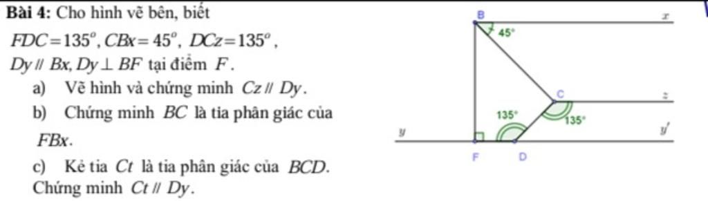 c) Kẻ Ct là tia phân giác của góc BCD. Chứng minh Ct ∥ Dy