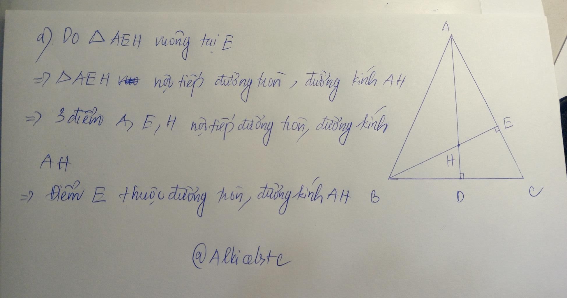 họ không hỏi thì chỉ cần trả lời A,H,E thuộc đường tròn đường kính AH là dc rồi